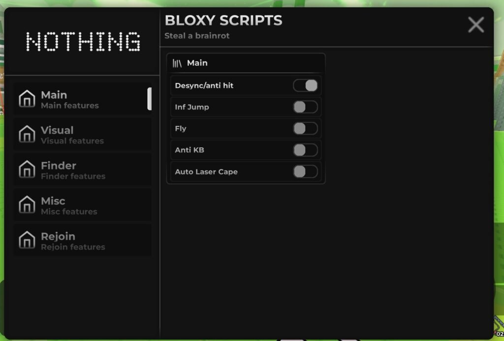 One of the main features is Anti Hit. When I turn it on, other players cannot hit me properly. Their attacks either miss or do no damage. This helps me stay safe while stealing brainrots, especially when many players try to stop me.